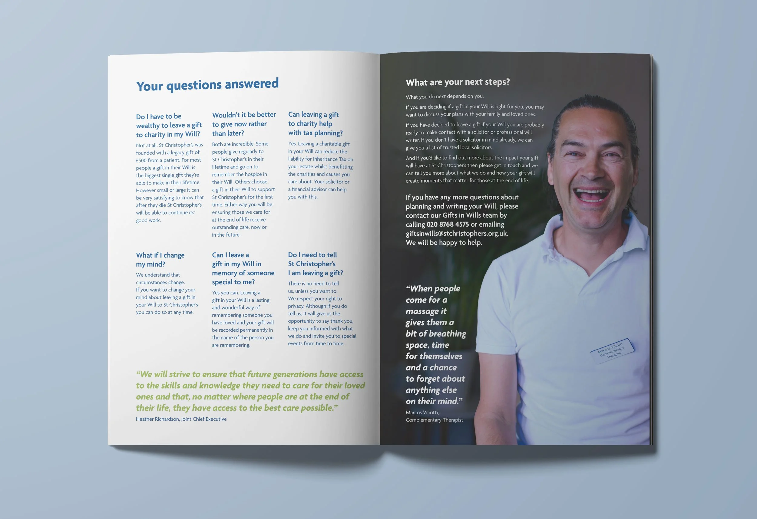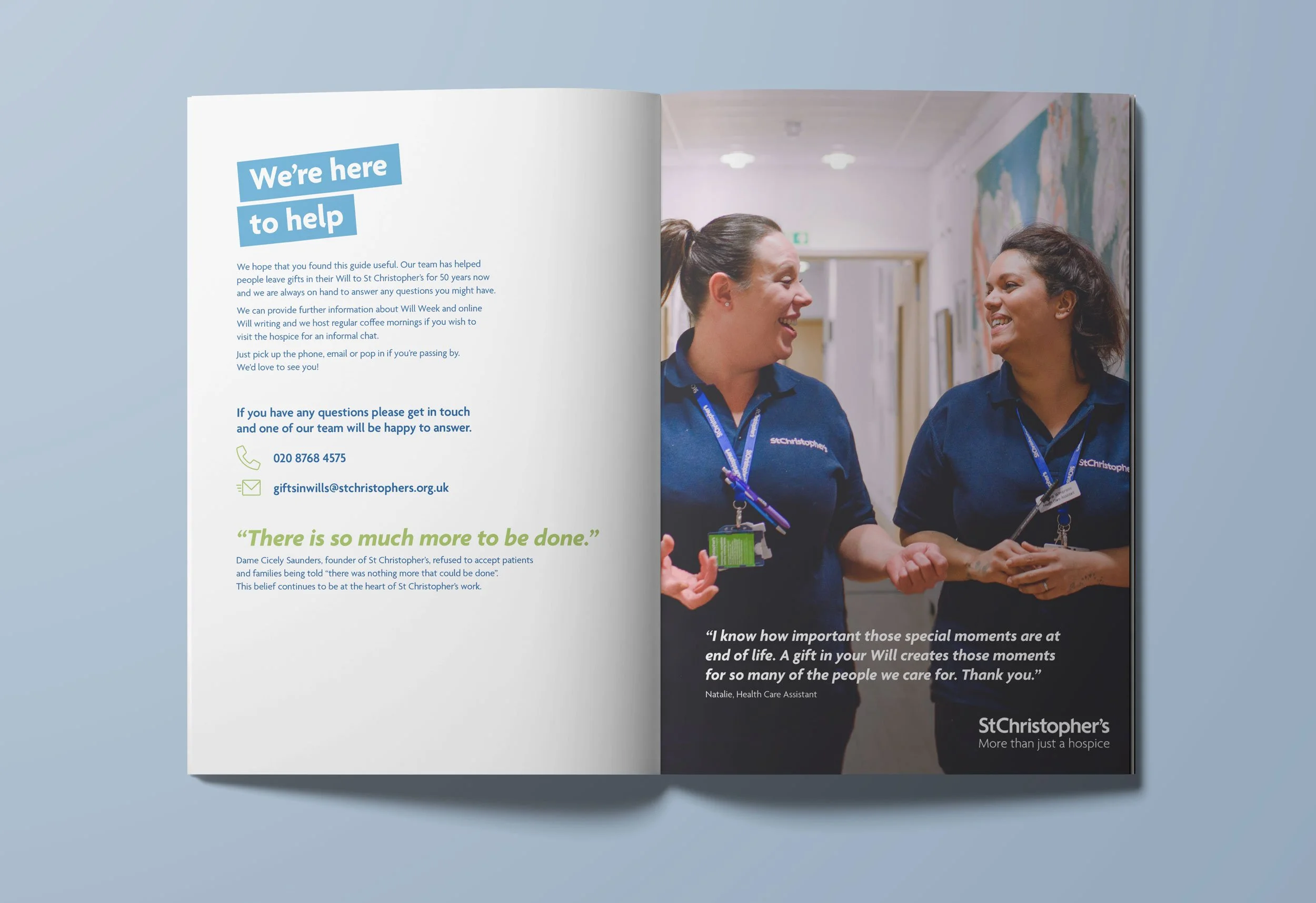 St Christopher’s approached us to help build a legacy proposition; with 1 in 4 people at St Christopher’s cared for thanks to legacy giving, it’s a big part of their fundraising.